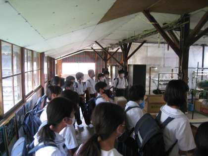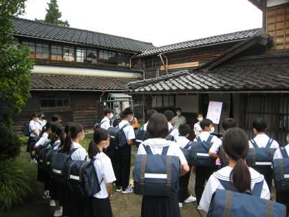 2組の企業見学「松井機業(城端絹の歴史や機織りの工場)」での様子です。