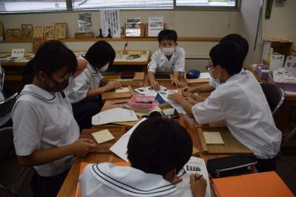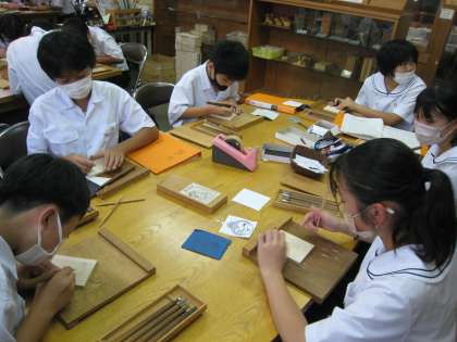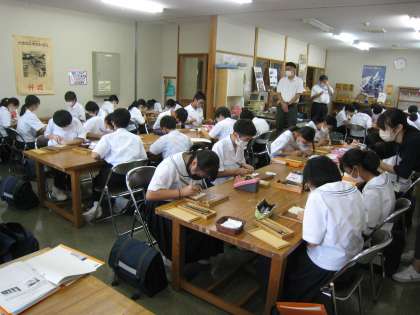 昨日行った校外学習の様子を紹介します。「木彫りの里」での体験学習の様子です。