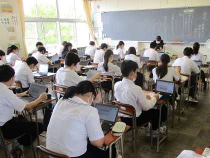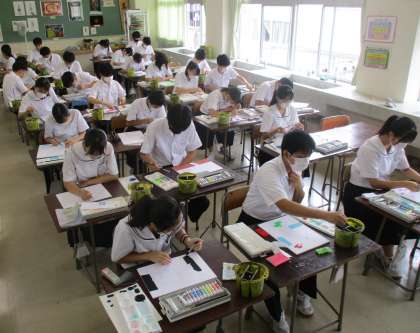 3年生の授業の様子を紹介します。 【写真上:美術】 【写真中:数学】 【写真下:国語】