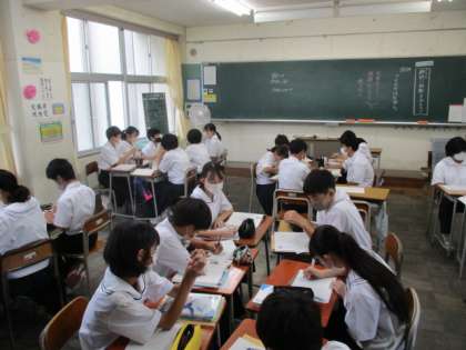 1年生の授業の様子を紹介します。 【写真上:英語】 【写真中:国語】 【写真下:保健体育】