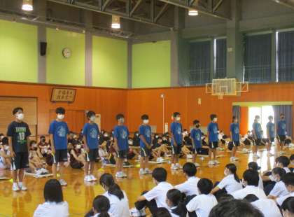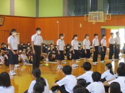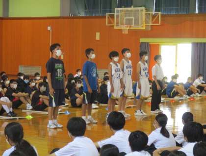 14日(水)新人大会 壮行会 その5 公開日 2022/09/14 更新日 2022/09/14 東部中学校の様子 各部の決意表明の様子です。 【写真上:陸上競技部】 【写真中:水泳部】 【写真下:駅伝部】