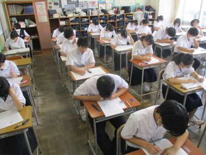 後輩たちが新人大会に挑む中、3年生は昨日に引き続き第4回「到達と確認テスト」を行いました。今回のテストを基に、学習内容の定着していないところを自ら確認しておきましょう。