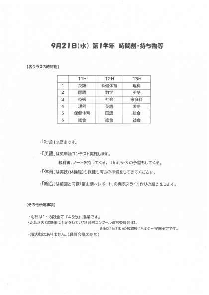 12/8( 月 ) 8日(水)確認テスト【3学年】