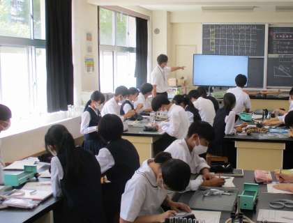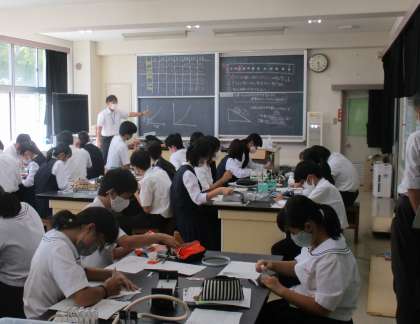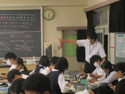 15日(木)教育実習生 研究授業【3年】 公開日 2022/09/21 更新日 2022/09/21 3学年 本日5限、実習期間が明日までとなった三井実習生さんが、3年1組で理科の研究授業を行いました。何人もの先生が参観する中、1組の生徒たちは実験結果の考察や話合い活動に取り組みました。
