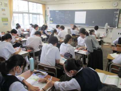 3年生の授業の様子を紹介します。 【写真上:国語】 【写真中:数学】 【写真下:社会】