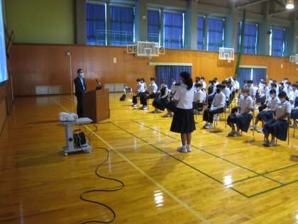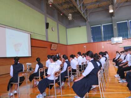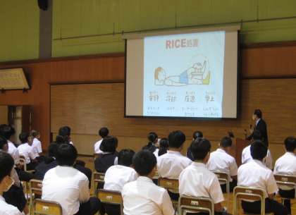 2年生は、山室クリニックの半田先生を講師に、整形外科医による講話を実施しました。日常生活での経験も多い怪我について、その予防法や対処法を学びました。今後の学校生活にも生かしていきたいですね。