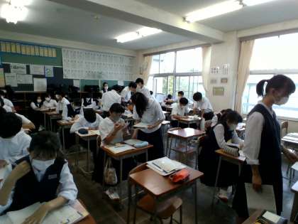 3年生の授業の様子を紹介します。 【写真上:音楽】 【写真中:国語】 【写真下:英語】