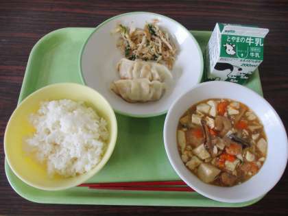 6日(木)きょうの給食 公開日 2022/10/06 更新日 2022/10/06 きょうの給食 今日の給食を紹介します。上左から 平皿(ナムル、焼きぎょうざ) 牛乳 えびと豆腐のうま煮 ごはん 「ナムル」は朝鮮半島の家庭料理の一つで、もやしなどの野菜やゼンマイなどの山菜、野草を塩ゆでしたものを調味料とゴマ油で和えたものです。ごはんが進みますね。
