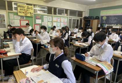 1年生の授業の様子を紹介します。 13H【社会の授業】