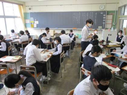 2年生の授業の様子を紹介します。 【写真上:国語】 【写真中:保健体育】 【写真下:英語】