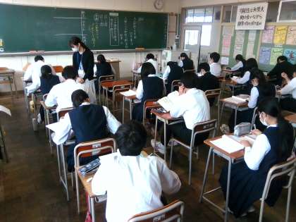 3年生の授業の様子を紹介します。 【写真上:国語】 【写真中:数学】 【写真下:社会】