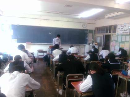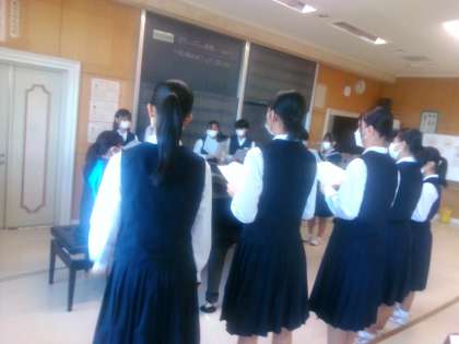 3年生の授業の様子を紹介します。 【写真上:英語】 【写真中:理科】 【写真下:音楽】