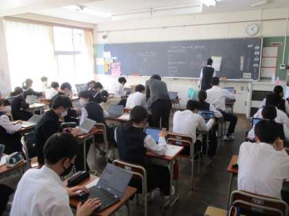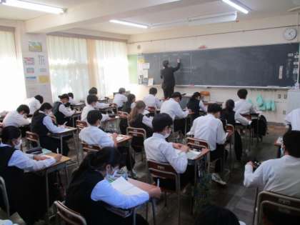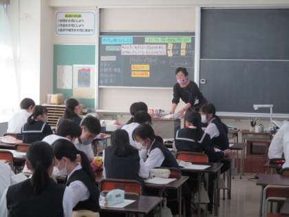 2年生の授業の様子を紹介します。 【写真上:道徳】 【写真中:理科】 【写真下:美術】
