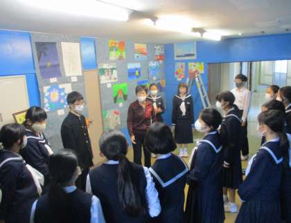24日(月)部活動の様子 その2 公開日 2022/10/24 更新日 2022/10/24 東部中学校の様子 美術部は、文化活動発表会に向け、東中スカイに作品を展示しました。 【写真上:美術部】 【写真中:吹奏楽部】 【写真下:卓球部】