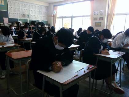 25日(火)到達と確認テスト【3年】 公開日 2022/10/25 更新日 2022/10/25 3学年 3年生は、本日1〜3限に第5回の「到達と確認テスト」を行いました。 明日は、午前中に残り2教科に取り組みます。