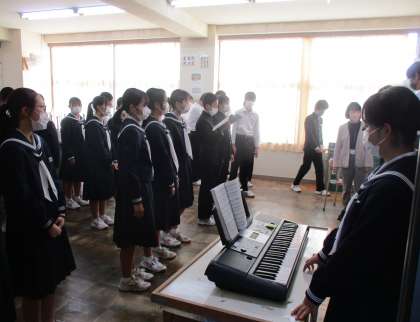3年生の合唱練習の様子を紹介します。 いよいよ明日は、全学年ともリハーサルとなります。