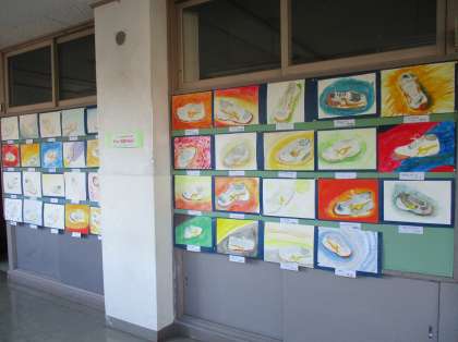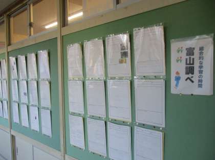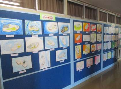 28日(金)展示作品情報【文化活動発表会】その2 公開日 2022/10/28 更新日 2022/10/28 東部中学校の様子 1年生の展示作品の様子を紹介します。 【写真上:「富山の魅力を再発見しよう」】 【写真中・下:「マイシューズに願いを込めて」】 是非とも文化活動発表会にお越しの際には、本物の作品をご覧ください。