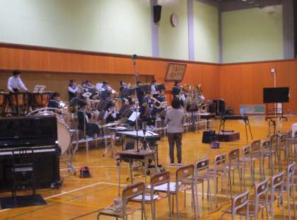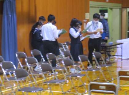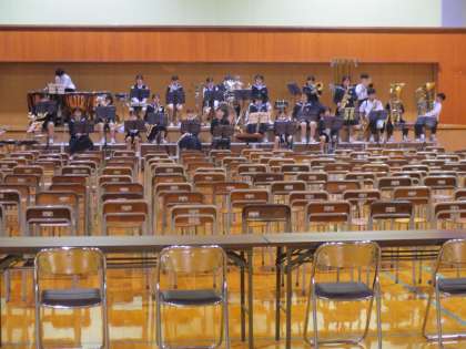 放課後に行った吹奏楽部のリハーサルの様子です。生徒会執行部の面々も進行の確認を行いました。