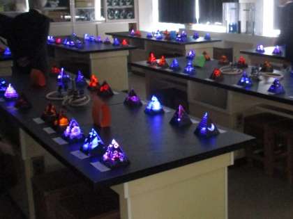 29日(土)展示作品情報【文化活動発表会】その5 公開日 2022/10/30 更新日 2022/10/30 2学年 昨日、紹介した2年生の展示作品「スクラッチランプ」。暗室の中で、ランプを灯した様子です。