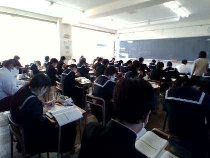 3年生の授業の様子を紹介します。 【写真上:保健体育】 【写真中:技術家庭】 【写真下:数学】