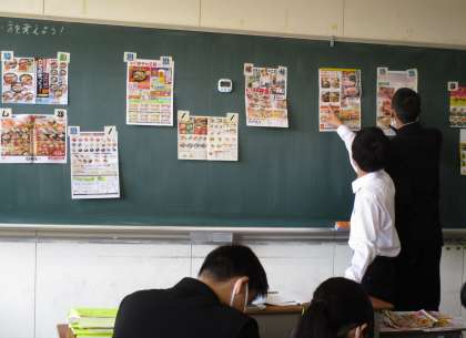 スーパーマーケットのちらしを使って夕食メニューを考える中で、これから学ぶ経済的な事象について、いくつもの気付きが見られたようです。