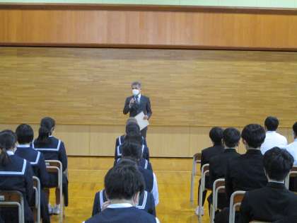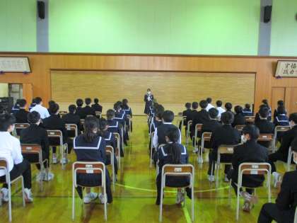 14日(月)「14歳の挑戦」結団式 その1 公開日 2022/11/14 更新日 2022/11/14 14歳の挑戦 いよいよ明日から始まる「社会に学ぶ『14歳の挑戦』」に向けて、5時間目に結団式を行いました。 学年生徒会の進行で諸注意の説明があった後、校長先生から激励の言葉が伝えられました。
