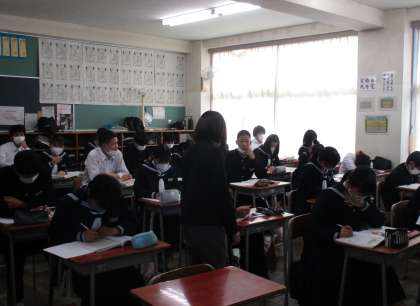 3年生の授業の様子を紹介します。 【写真上:理科】 【写真中:英語】 【写真下:数学】