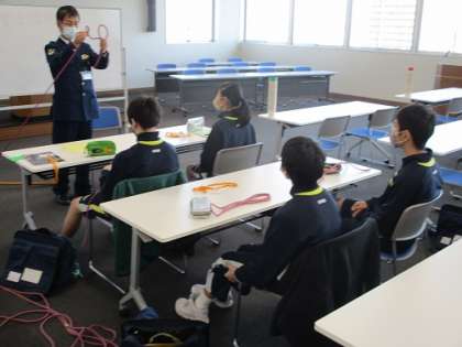 16日(水)「社会に学ぶ『14歳の挑戦』」その9 公開日 2022/11/16 更新日 2022/11/16 14歳の挑戦 【上・中:富山市立東部中学校】清掃と掲示物作成をしています。 【下:富山中央警察署】縄の使い方を練習しています。