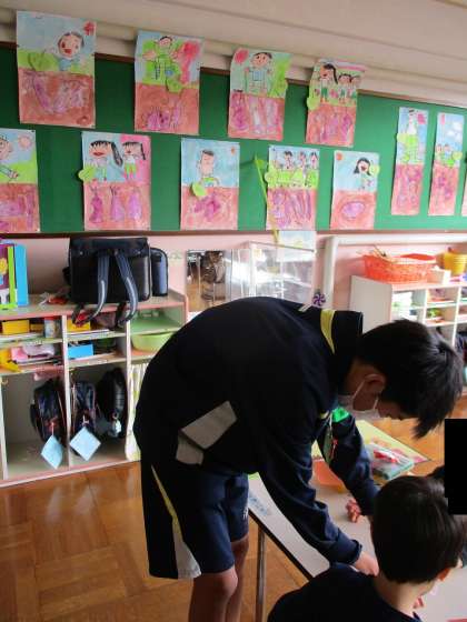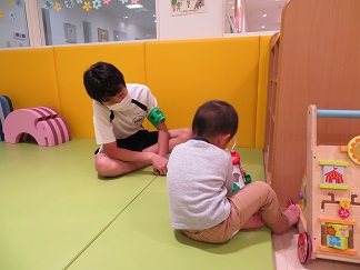 【中:富山市子育て支援センター】幼児と触れあっています。