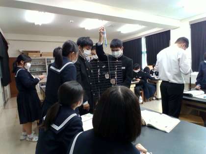 3年生の授業の様子を紹介します。 【写真上:理科】 【写真中:音楽】 【写真下:保健】