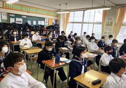 1年生の授業の様子を紹介します。 【写真上:書写】 【写真中:国語】 【写真下:保健体育】