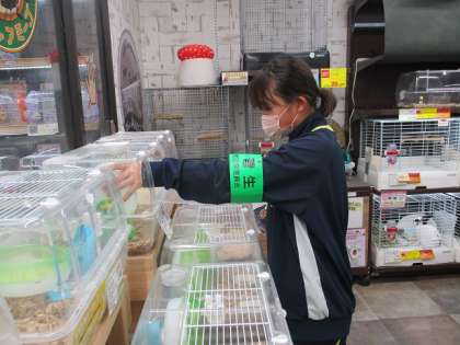 17日(木)「社会に学ぶ『14歳の挑戦』」その16 公開日 2022/11/17 更新日 2022/11/17 14歳の挑戦 【上:富山長江郵便局】お知らせの作成をしています。 【中:満天の湯富山店】テーブルの掃除をしています。 【下:アミーゴ富山山室店】ペットの世話をしています。