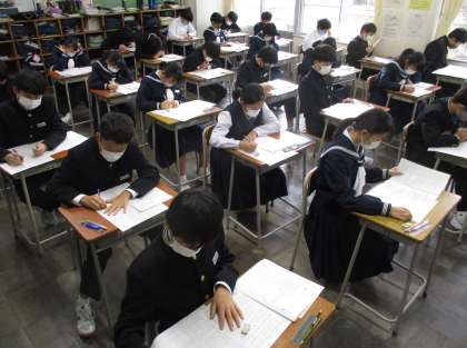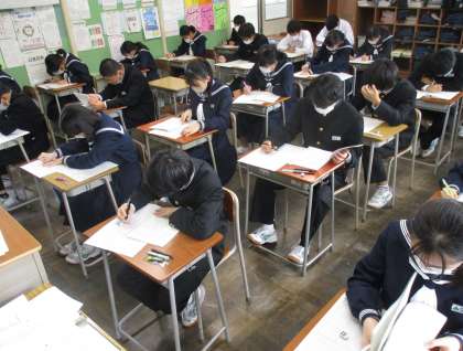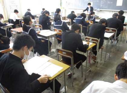 本日は2学期の期末考査の2日目です。 写真は、2年生の様子です。