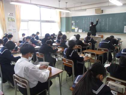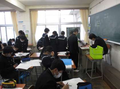 1年生の授業の様子を紹介します。 【写真上:家庭科】 【写真中:数学】 【写真下:書写】