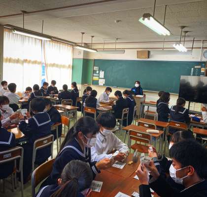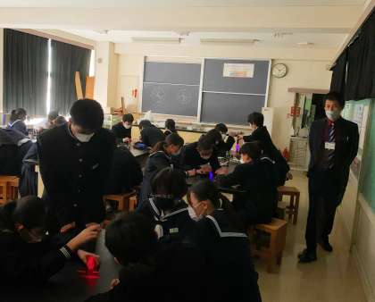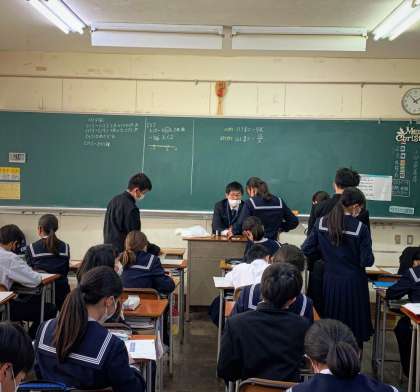 1年生の授業の様子を紹介します。 【写真上:学活】 【写真中:理科】 【写真下:数学】