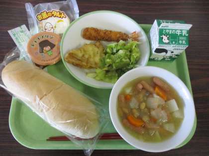 本日は選択献立でした。写真の様に、●○◆◇と両方のデザートと主菜が揃ったお盆の上は、なかなか豪勢でにぎやかですね。