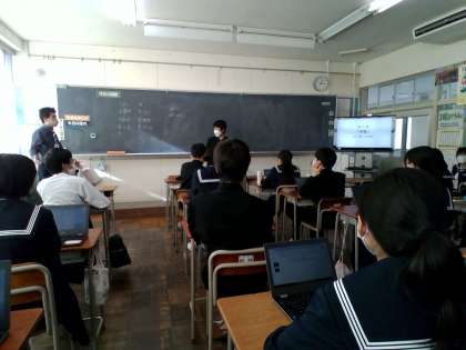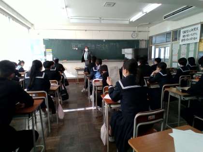 3年生の授業の様子を紹介します。 【写真上:社会】 【写真中:保健体育】 【写真下:理科】