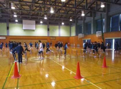 保護者懇談会期間の本日放課後、運動部合同のトレーニングを体育館で行いました。