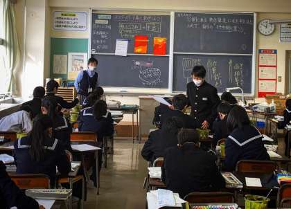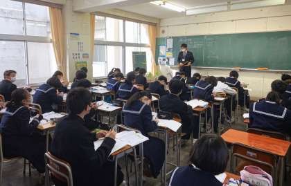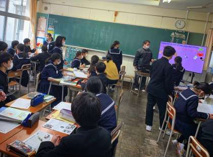 1年生の授業の様子を紹介します。 【写真上:美術】 【写真中:数学】 【写真下:英語】