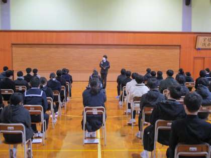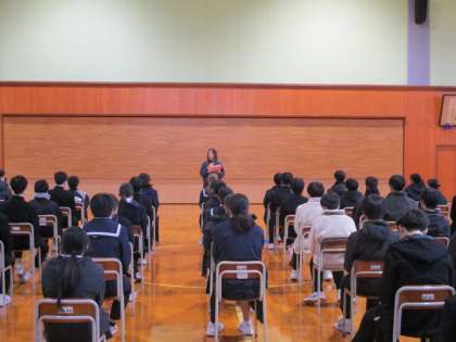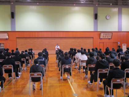 22日(木)学年集会【2学年】 公開日 2022/12/22 更新日 2022/12/22 2学年 5時間目に2学期最後の学年集会を行いました。 来年の今頃は受験に向かって勉強をしていること、この冬休みの過ごし方が重要であること、そして学習だけでなく規則正しい生活を送り、健康に過ごしてほしいことが伝られました。 2年生としての期間も残りわずかです。1日1日を大切に過ごしましょう。