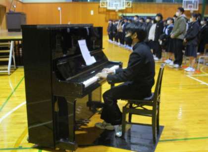 また、今日の終業式から、校歌斉唱のピアノ伴奏者が、3年生から2年生へと替わりました。
