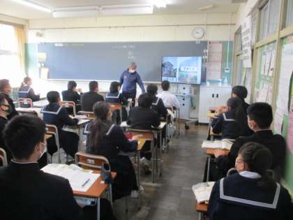 2年生の授業の様子を紹介します。 【写真上:保健体育】 【写真中:理科】 【写真下:社会】