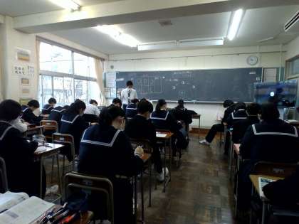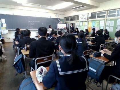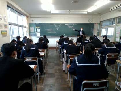 3年生の授業の様子を紹介します。 【写真上:社会】 【写真中:英語】 【写真下:理科】