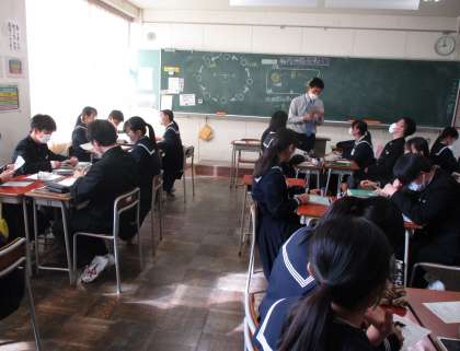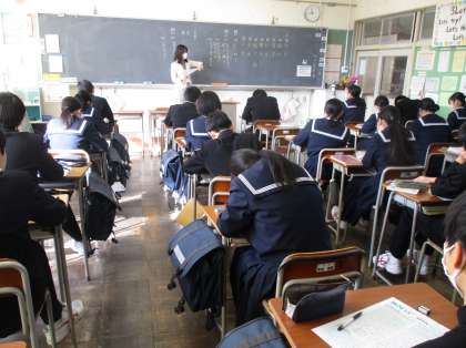 3年生の授業の様子を紹介します。 【写真上:保健体育】 【写真中:理科】 【写真下:国語】