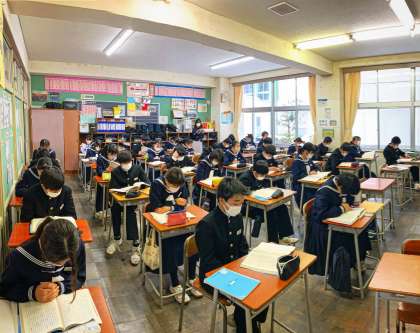 1年生の授業の様子を紹介します。 【写真上:理科】 【写真中:国語】 【写真下:社会】