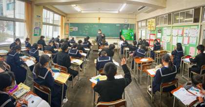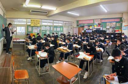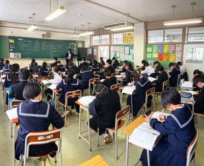 1年生の授業の様子を紹介します。 【写真上:数学】 【写真中:社会】 【写真下:英語】