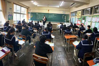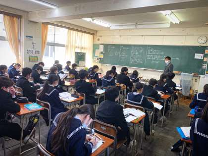 1年生の授業の様子を紹介します。 【写真上:数学】 【写真下:社会】