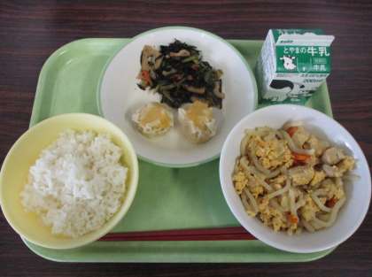 平皿(ひじきと小松菜の炒め煮、にんじんシューマイ)