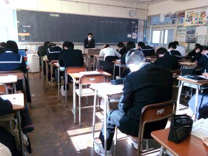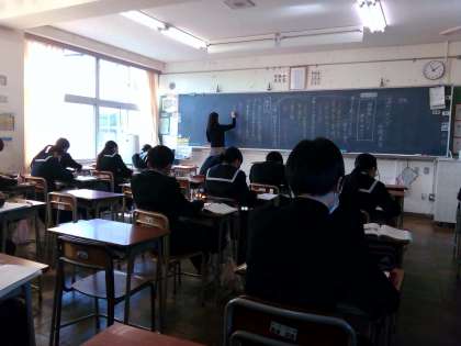 3年生の授業の様子を紹介します。 【写真上:英語】 【写真中:国語】 【写真下:社会】