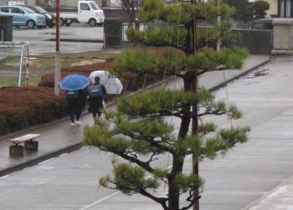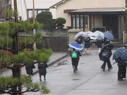 1日中、雨が続いた今日。 下校する生徒たちの様子です。明日は、なんと雪の予報も出ていますね。